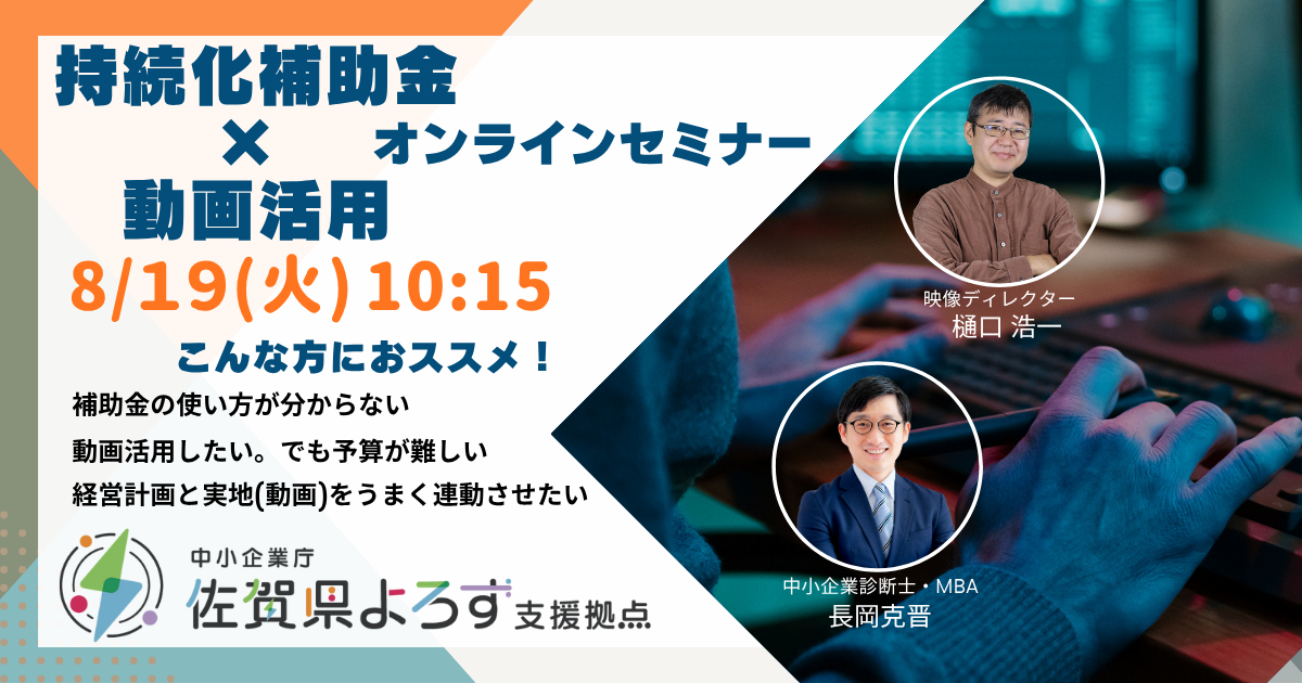 • 講師: 樋口浩一(映像ディレクター/佐賀よろず支援拠点コーディネーター)× 長岡克晋(中小企業診断士)